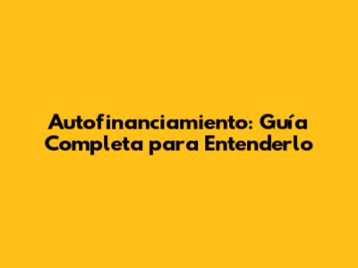 Autofinanciamiento: Guía Completa Para Entenderlo