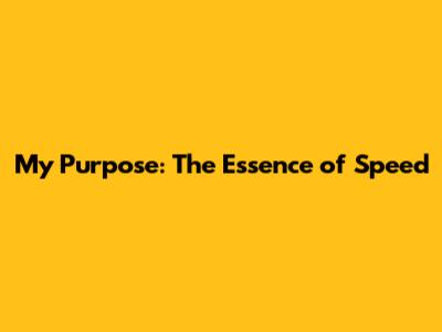 My Purpose: The Essence Of Speed